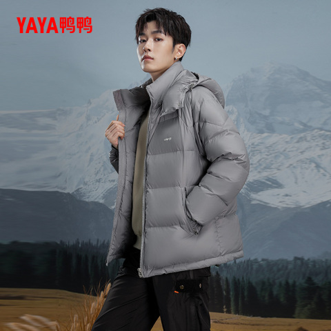 鸭鸭立领连帽休闲短款羽绒服男