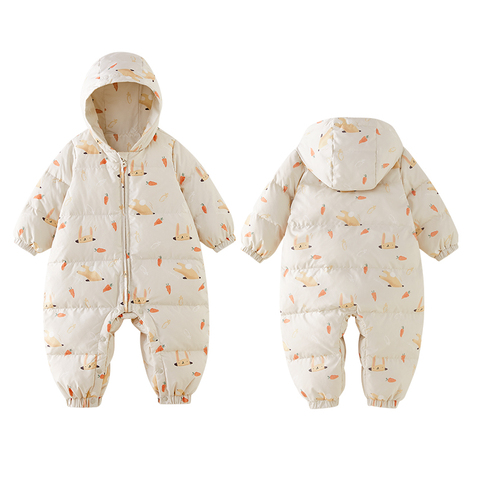 十月结晶粒粒阳光婴儿羽绒服寒冬季婴儿连体衣白鸭绒蓄热羽绒爬服