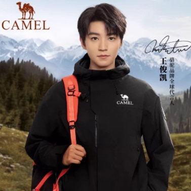 [王俊凯同款]骆驼王者凯甲ICON黑色冲锋衣男三合一户外防水外套女