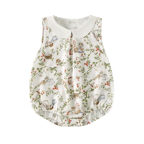 欧孕婴幼儿无袖翻领包屁衣