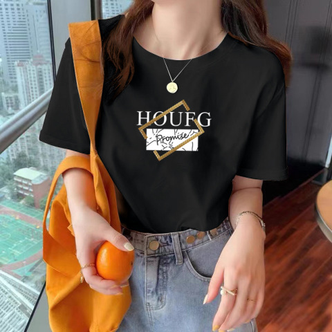 短袖t恤女夏季韩版宽松字母圆领