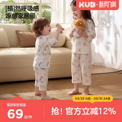 可优比儿童家居服套装宝宝睡衣竹棉夏季空调服新款透气外出服春夏