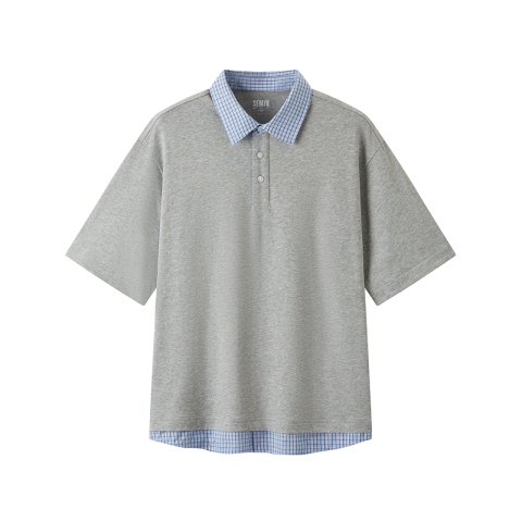 森马假两件拼接翻领休闲POLO衫男