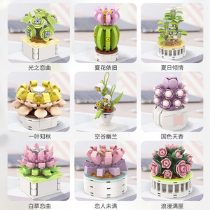 哲高积木多肉植物永生花diy礼物