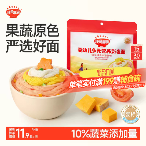 秋田满满宝宝辅食婴幼儿彩色面条