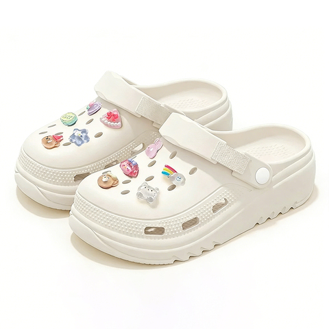 七色纺厚底增高洞洞鞋女款踩屎感