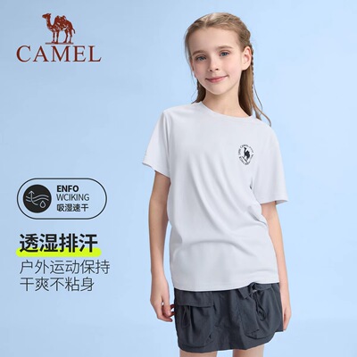 骆驼儿童圆领T恤男女童吸湿速干透气运动上衣童装纯色百搭短袖